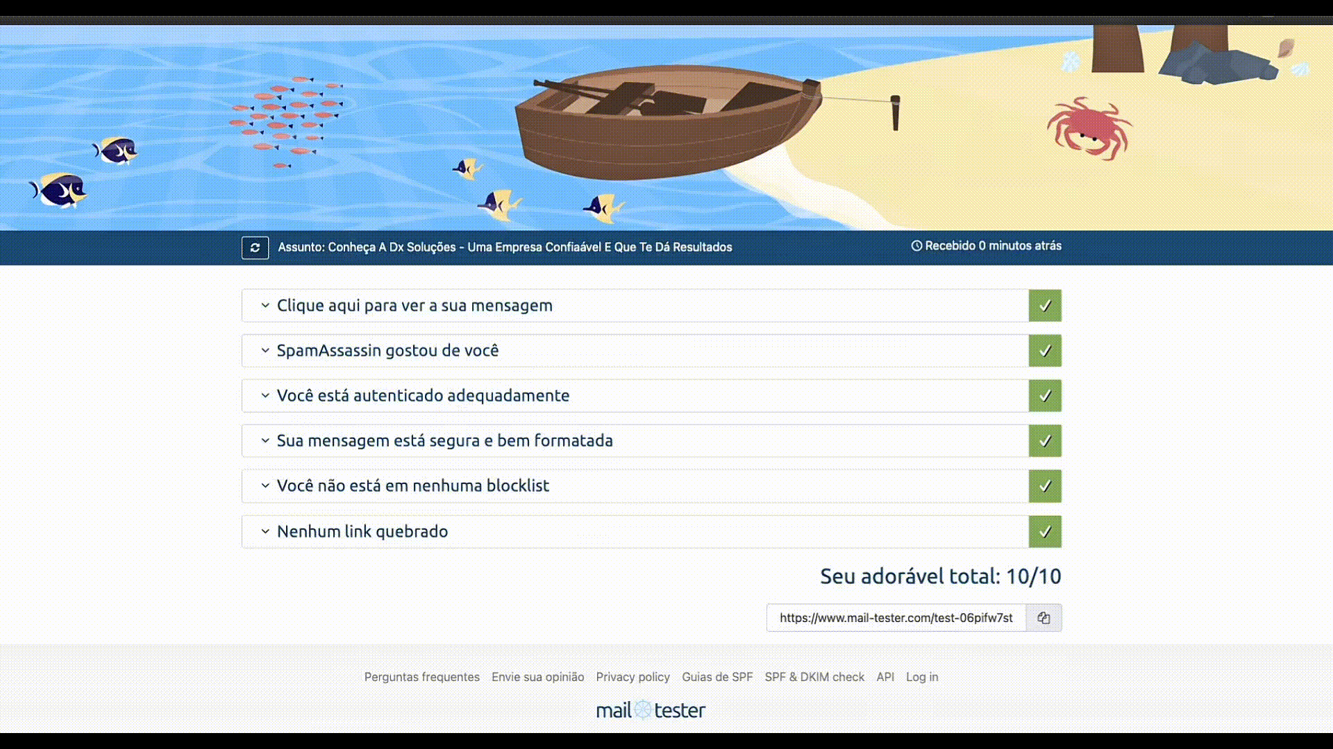 O Mail Tester é uma plataforma que avalia e dá uma nota para padrões de configuração de e-mail e nossa plataforma obteve nota máxima (10/10). Tudo isso porque nosso produto segue: